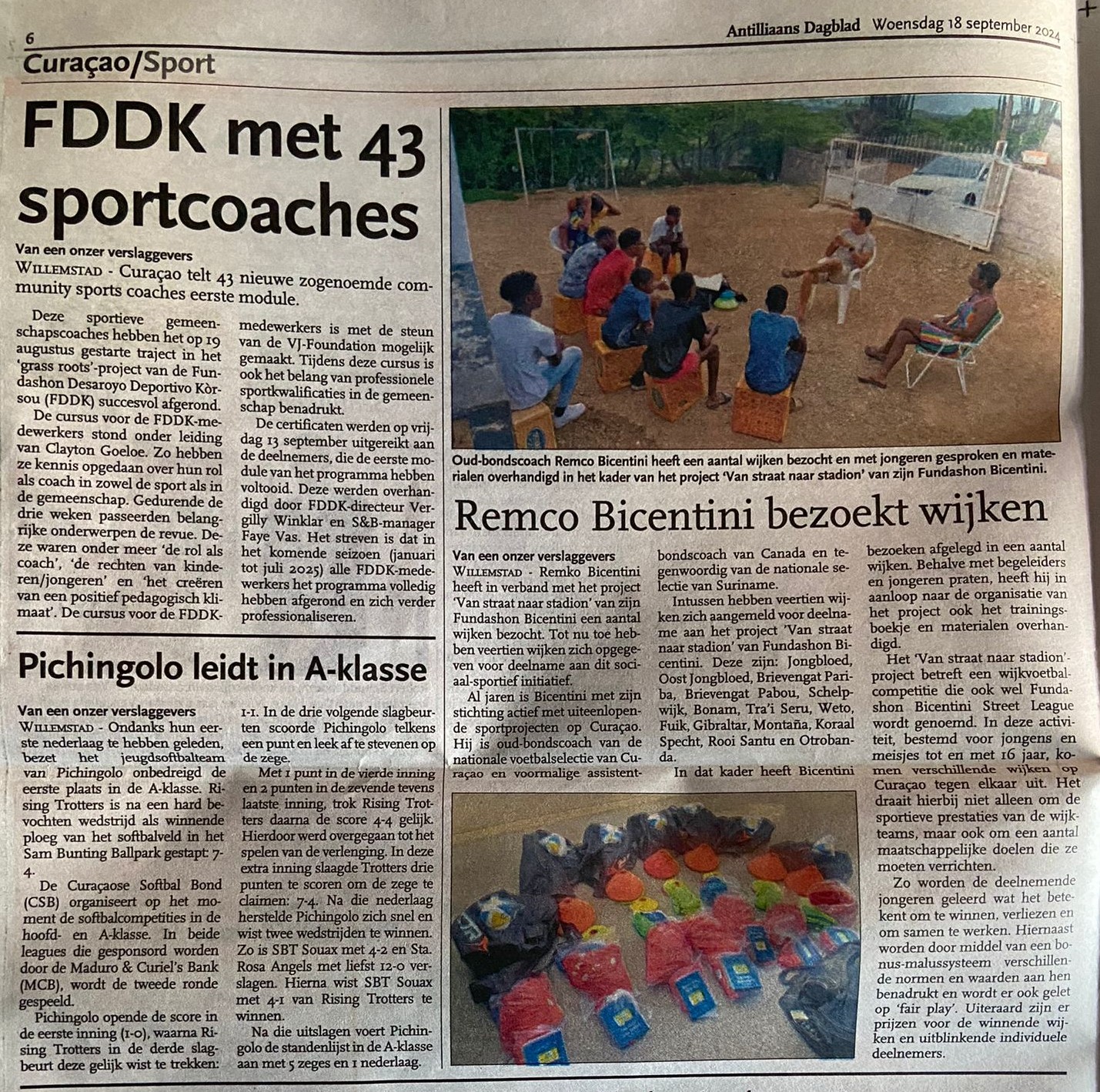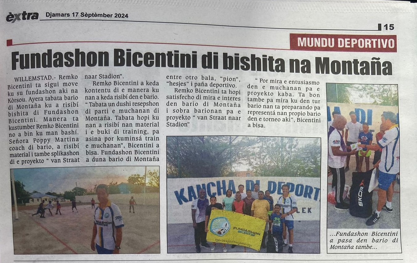 In september is de Fundashon bij alle wijken langs geweest om de materialen te brengen die nodig zijn voor de voetbalcompetitie. Dat zijn trainings- en wedstrijdkleding, ballen en trainingsboekjes voor de coaches.