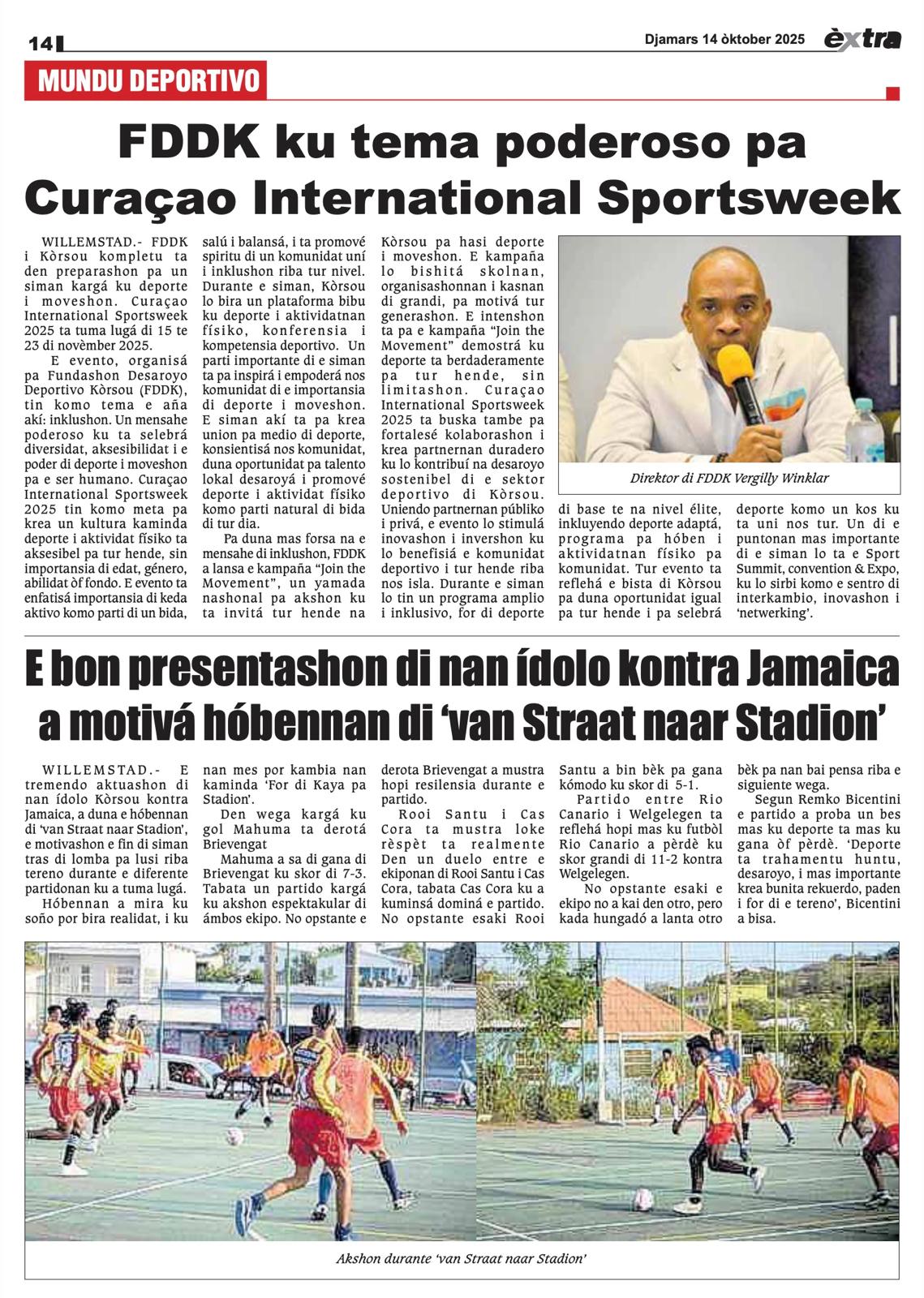 “De mooie prestatie van hun idolen de nationale helden van Curaçao tegen Jamaica motiveerde de kinderen afgelopen weekend gigantisch en werkte als katalysator, hun droom is ook om vanuit de straat in een volgepakt stadion te kunnen vlammen. Jongeren zagen dat dromen werkelijkheid kunnen worden, en dat ook zij ‘van Straat naar Stadion’ die weg kunnen bewandelen. We hebben het besproken met de wijkteams en wat er daarna gebeurde in de wedstrijdjes ‘van Straat naar Stadion’ was meer dan voetbal. Het was gemeenschap. Het was toekomst. Het was hoop” aldus Remko Bicentini.