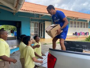 Op 29 januari leveren we een pick-up vol met de rekenmethode Pluspunt af bij Collegio Nechi Pieters in Buena Vista. Zoals overal krijgen we goede hulp van de leerlingen bij het uitladen van de zware dozen. De Kolegio Nechi Pieters een kleine school met ongeveer 129 leerlingen. “Het team spant zich in om de kwaliteit van het onderwijs op een volksschool te verbeteren en te verhogen. Daarnaast willen ze ook sociale activiteiten organiseren en de leerlingen een prettige leerrijke omgeving aanbieden. Dit is niet makkelijk aangezien de school niet beschikt over de nodige fondsen en daarom ondersteunen we met de Fundashon Bicentini” aldus Remko Bicentini. Ook de taalmethode Estafette brengen we naar de Collegio Nechi Pieters.