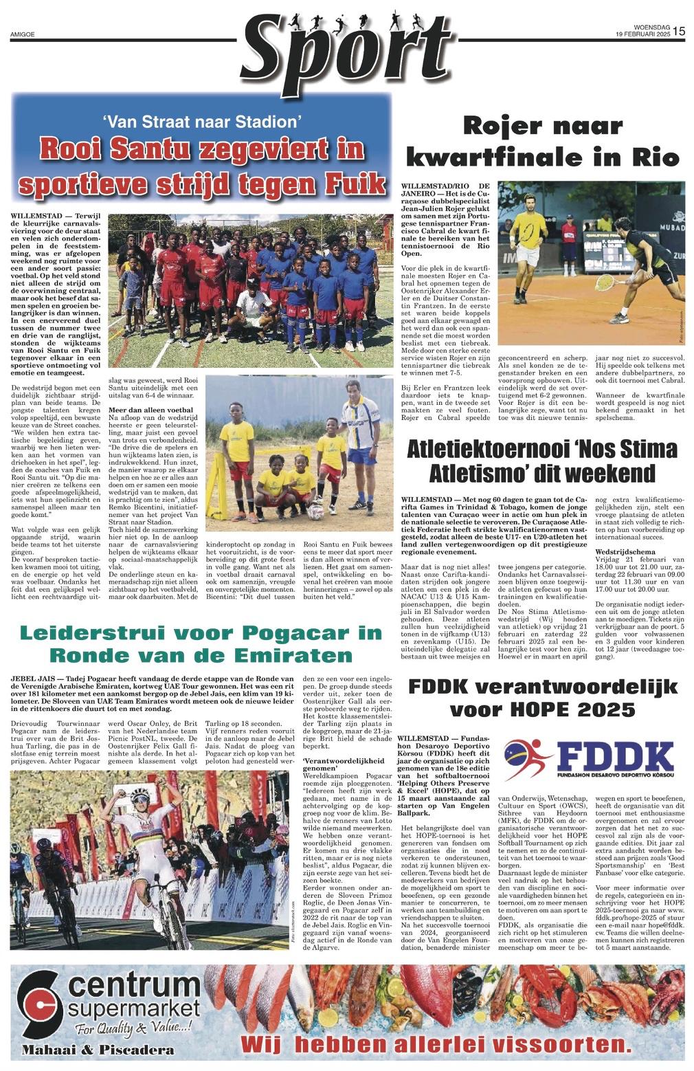 Terwijl de kleurrijke carnavalsviering voor de deur staat en velen zich onderdompelen in de feeststemming, was er afgelopen weekend nog ruimte voor een ander soort passie: voetbal. Op het veld stond niet alleen de strijd om de overwinning centraal, maar ook het besef dat samen spelen en groeien belangrijker is dan winnen. In een enerverend duel tussen de nummer twee en drie van de ranglijst, stonden de wijkteams van Rooi Santu en Fuik tegenover elkaar in een sportieve ontmoeting vol emotie en teamgeest.
