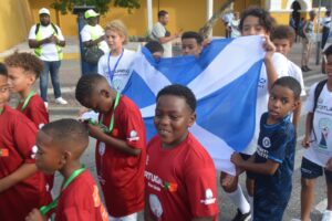 Opening Het WK werd vervolgens officieel geopend door Gouverneur de Kort via een videoboodschap en minister Heydoorn. Na een korte speech nam hij het op tegen een speler van Algerije. Met een doelpunt voor Algerije werd het WK geopend! Het geheel werd georganiseerd door Wendy-Jane Gomes en Hans van Aalst, kwartiermaker voor de binnenstad, van Blue Wave Innercity Willemstad samen met de Fundashon Bicentini. “Ik ben er zeer trots op dat we zijn benaderd door Blue Wave Innercity Willemstad om de WK voor kinderen die de Fundashon Bicentini organiseert te starten midden in het hart van Willemstad. Ik zie het als een erkenning voor het werk dat ik al bijna 20 jaar met mijn Fundashon doe, voor kinderen met de focus op sport, samenhorigheid en respect”, zegt initiatiefnemer Remko Bicentini. Zo’n groot evenement is natuurlijk niet te organiseren zonder sponsoren. Deze werden dan ook op de grote schermen getoond aan het publiek, we danken met name de Johannes Bosco Stichting, Building Depot, Botika di Servisio, National Carrental, Lionsdive, SD Sportswear (nl), Sport met Snelders (nl), Technisol (nl) en MCB.